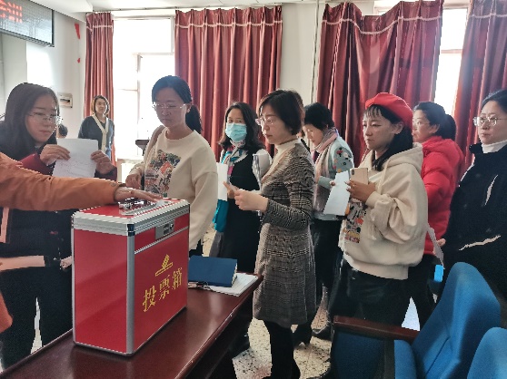 李梦阳主持选举万象城娱乐awc线路出席第七届教职工代表大会暨第十四次工会会员代表大会代表投票环节。由计票同志清点到会教职工人数,填写《清点人数报告单》,万象城娱乐awc线路共有教职工109人,此次会议共参会教职工100人,符合选举要求。经过差额选举,最终选举出席第七届教职工代表大会暨第十四次工会会员代表大会代表为王丹、王晓妍、王晚明、齐艳、张彪、张鸣瑾、陈志伟、金晓满、郭林、董辉、董晓烨十一位同志。(按姓氏笔画排序)