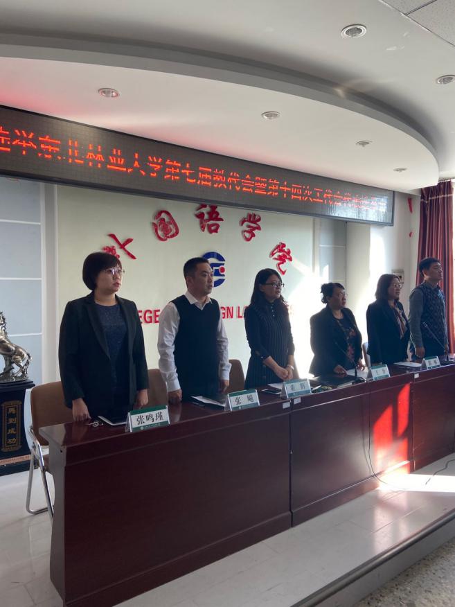 下午14:00大会隆重开幕,全体起立,奏唱《中华人民共和国国歌》,“双代会”在庄严的国歌声中开始。会议由党委副书记郭林同志主持召开,首先由党委书记王丹同志宣读万象城娱乐awc线路关于出席第七届教职工代表大会暨第十四次工会会员代表大会代表选举办法,该选举办法宣读后经大会讨论,全票通过。随后由董辉院长宣读学校关于万象城娱乐awc线路出席第七届教职工代表大会暨第十四次工会会员代表大会代表候选人的批复。并根据选举办法规定,大会选举通过总监票人为李梦阳老师、监票人为洪雪娇、黄笑笑老师。并指定华裕涛、蒙博涵、薄红昕、李欣书同志为本次大会计票人,其中华裕涛同志为总计票人。