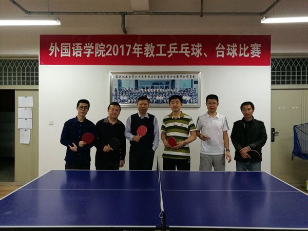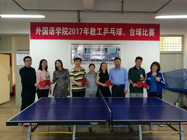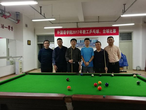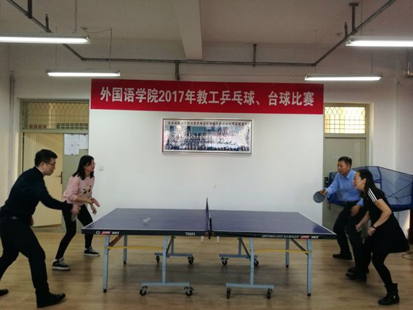 历时4天的乒乓球、台球友谊赛在激烈的对抗与欢乐中落下帷幕。本次活动不仅为我院教工带来了运动激情,丰富了校园文化生活,更拉进了同志间的距离,增进了彼此的友谊。更重要的是加强了整个外语学院的凝聚力,展现了我院教工积极向上、奋勇拚搏的精神风貌。(文:陈志伟图:王楠)