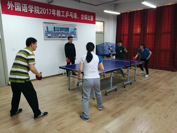 为丰富教工文化生活,展现外语学院教师风采,学院工会于11月27-30日下午3:30分举办了万象城娱乐awc线路2017年教工乒乓球、台球比赛。参加比赛的不仅有年轻的教师,也有一些中老年教师参加,共有40余人次参加了比赛。