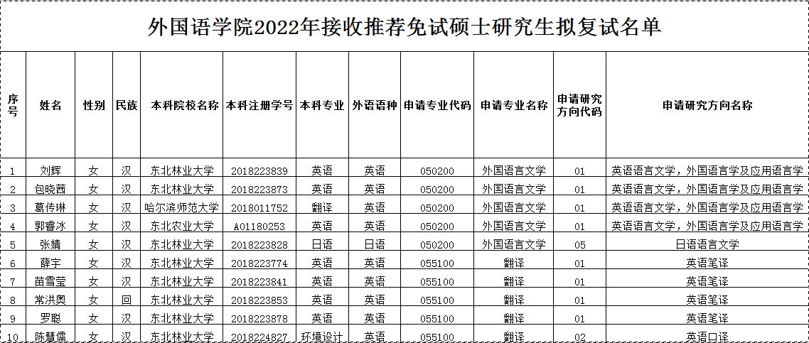 万象城娱乐awc线路2022年接收推荐免试硕士研究生拟复试名单