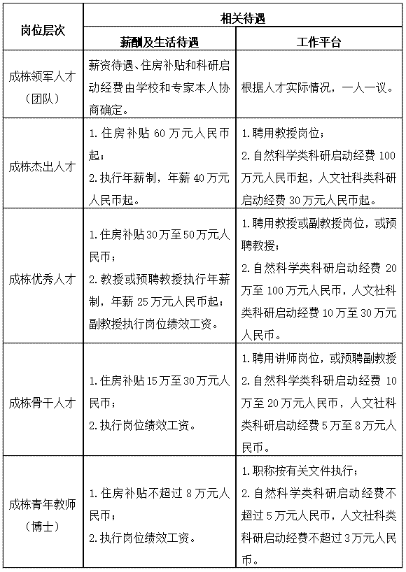 “成栋英才引进计划”招聘各岗位均为事业编制,符合条件者可享受黑龙江省高层次人才服务政策,为出入境、落户、医疗、出行、配偶安置及子女入学等提供便利,学校提供具体待遇如下: