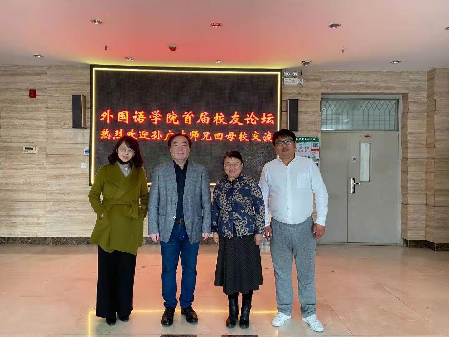 4月9日下午,万象城娱乐awc线路首届校友论坛在文博楼1019多功能报告厅拉开帷幕。我校校友办副主任于纪航,万象城娱乐awc线路客座教授、黑龙江省皮草流通行业协会秘书长、我院英语专业第一届毕业生孙广才,万象城娱乐awc线路院长董辉、万象城娱乐awc线路党委副书记、副院长郭林及2020级英语专业全体学生出席本次活动。活动由学院党委副书记、副院长郭林主持。