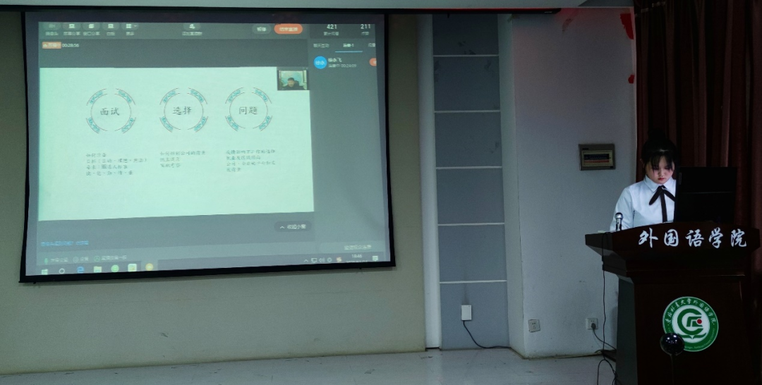 徐永飞师兄从学习,工作和感悟三个方面向同学们分享自己的经验。他提到了“书是人生的恩人,工作是安身立命的根本。书是我成长中的密友,是进步的阶梯,是成熟的学校。”从《基督山伯爵》到《钢铁是怎样炼成的》,从《丘吉尔传》到《领导者》,徐永飞懂得了读书的意义,明白了努力所带来的巨大力量。即便读书没有让人入繁华之境,听喧嚣声音,见纷扰生灵,怀滚烫心情,但却给了读者先辈们所有的智慧与感悟,这便是读书的意义。徐永飞的看法引起了外语学子的共鸣,同学们纷纷表示赞同并下定决心努力学习。