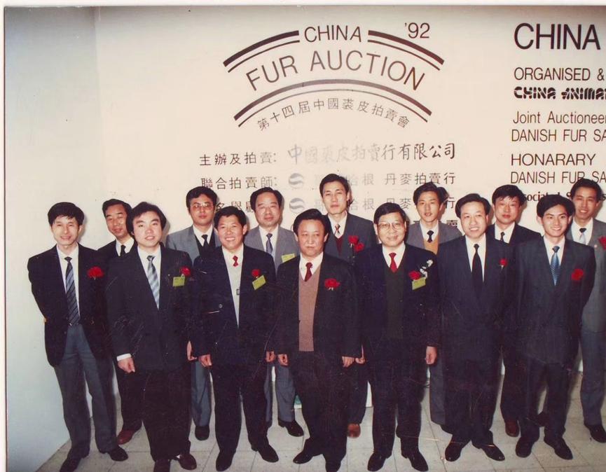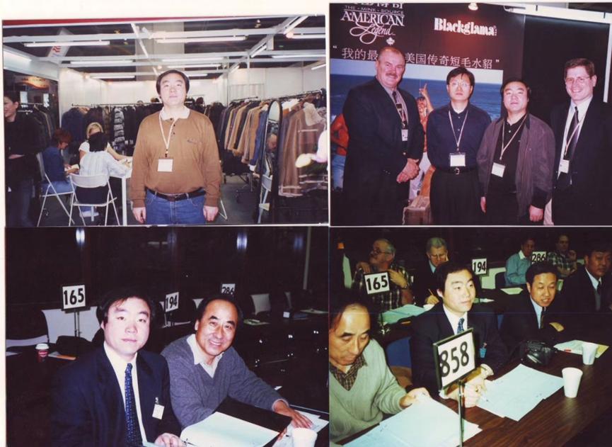 校友孙广才参加美国西雅图裘皮拍卖会及香港时装展时与外商合影。