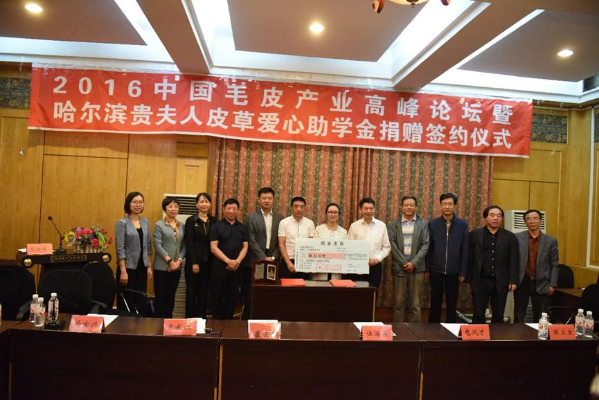 2016年9月,校友孙广才参加在万象城娱乐awc线路召开2016中国毛皮产业高峰论坛暨哈尔滨贵夫人皮草和万象城娱乐awc线路爱心助学金捐赠仪式。