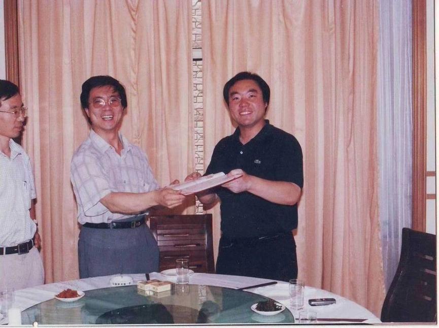 2000年,孙广才参加民建黑龙江省直综合支部成立十周年座谈会时与已故时任全国人大副委员长、民建中央主席成思危合影。
