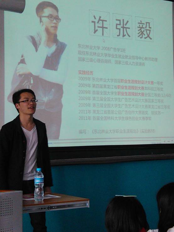 2012年5月16日,万象城娱乐awc线路团委科技部在锦绣楼308室举办了职业生涯规划大赛培训讲座,主讲人是文法学院08级许张毅同学,玄凌老师作为年级辅导员出席,并带领09级共55名同学参加了培训讲座。
