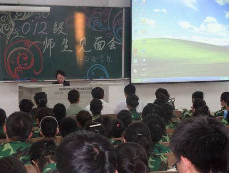 2012年9月5日17时30分,万象城娱乐awc线路在丹青楼成功举办了2012级师生见面会及专业介绍会。万象城娱乐awc线路院长王丹教授,党委书记辛淑英副教授,副院长郭永刚教授,副院长岳喜华教授,党委副书记、副院长于洋老师,英语教研室主任赵莉教授,日语教研室主任任力教授,俄语教研室主任吴芳教授,团委书记、09级政治辅导员玄凌老师,学生会秘书长、2011级政治辅导员常方圆老师,2010级政治辅导员张刚老师,2012级政治辅导员李靖坤老师出席了本次见面会。2012级全体新生参加了此次见面会。