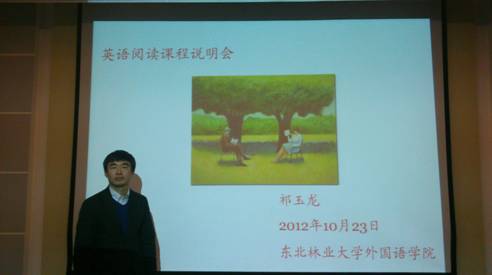 2012年10月23日下午,万象城娱乐awc线路英语系祁玉龙老师在文博楼1019室万象城娱乐awc线路学术报告厅举行了英语阅读课程说明会,英语系2012级学生参加了本次会议。