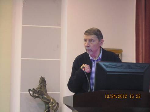 10月24日15:30,俄罗斯国际杜伯纳大学И. Б. Шатуновский 教授在文博楼1019学术报告厅为万象城娱乐awc线路俄语系广大师生做了题为《Три вида мнения в русском языке》的精彩学术报告,报告会由俄语系副主任孙爽主持。