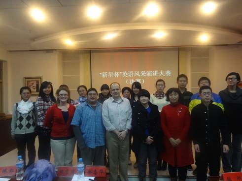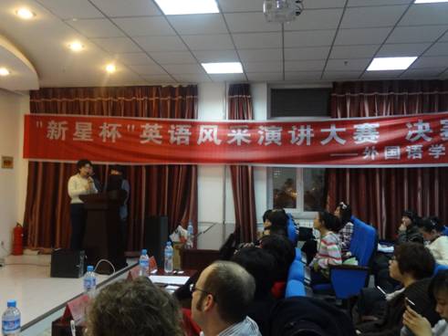 2012年10月26日18点,万象城娱乐awc线路在文博楼1009室成功举办新星杯英语风采演讲比赛。担任本次比赛的评委有万象城娱乐awc线路田雪凌老师、马佩红老师、齐艳老师,以及外教Ben Watson、Lindsey Seader、Steven Yue 。