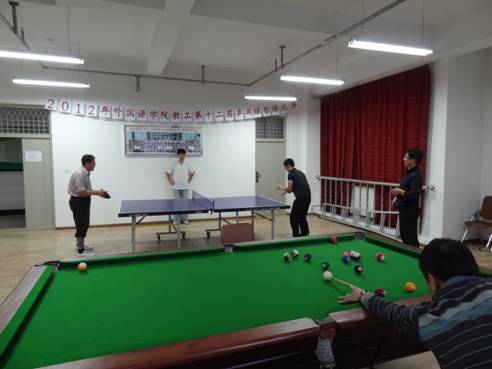 为活跃广大教职工业余文化生活,提高身体健康水平,万象城娱乐awc线路工会于2012年11月8日至9日在文博楼学院健身中心成功举办了万象城娱乐awc线路第十二届教职工乒乓球、台球大赛。学院教职工对此次比赛表现出极大的热情,踊跃报名,积极参与。经过激烈角逐、拼搏,比赛取得圆满结束,成绩可喜。