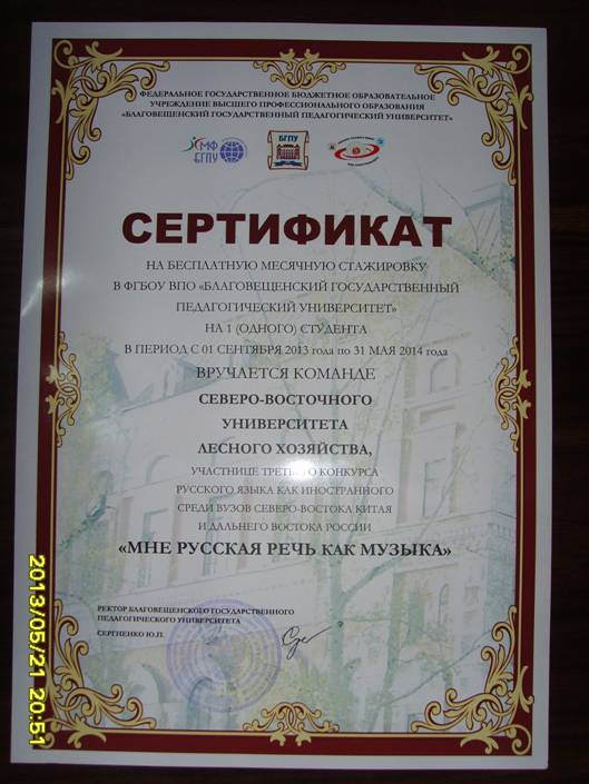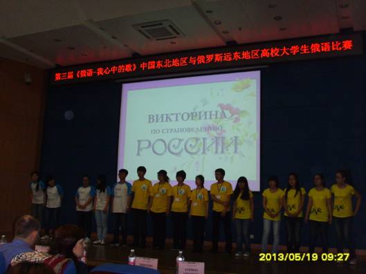2013年5月17日-5月19日在哈尔滨举办了第三届《俄语--我心中的歌》中国东北地区及俄罗斯远东地区高校大学生国际俄语大赛,比赛由俄罗斯布拉戈维申斯克国立师范大学和哈尔滨理工大学共同承办。此次比赛的参赛者有来自俄罗斯的布拉戈维申斯克国立师范大学和来自中国东北地区的黑龙江大学、哈尔滨理工大学、哈尔滨师范大学、吉林大学、东北石油大学、辽宁石油化工大学等近20所院校,每个学校分别派出了由4-5人组成的代表队来参加比赛。