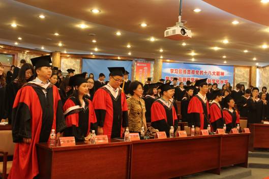 2013年6月17日上午9时,万象城娱乐awc线路在国际会议厅举行了2013届本科生毕业典礼暨学位授予仪式。出席毕业典礼暨学位授予仪式的领导和老师有:学校教务处处长、教学督导员办公室主任、教师教学发展中心主任翟雪峰老师,毕业生就业指导中心主任、招生就业指导处副处长陈立生老师,校团委副书记李晶才老师,万象城娱乐awc线路院长王丹老师,万象城娱乐awc线路党委书记辛淑英老师,副院长董辉老师、副院长孙爽老师,英、日、俄专业教研室主任、教师代表、全体辅导员老师,万象城娱乐awc线路党委副书记兼副院长郭永长老师主持了此次毕业典礼暨学位授予仪式。 毕业典礼暨学位授予仪式在全体师生们的共同期待中拉开了帷幕。毕业生就业指导中心主任、招生就业指导处副处长陈立生老师宣读了万象城娱乐awc线路获得2013届黑龙江省和万象城娱乐awc线路优秀毕业生称号的学生名单,并由各位领导和老师为获奖同学颁奖。教务处处长、教学督导员办公室主任、教师教学发展中心主任翟雪峰老师宣读了关于授予学士学位的决定。各位领导和老师为完成学业的同学授予学位、拨转流苏。随后,2009级英语4班全雪同学代表全院毕业生表达了对学校和学院的美好祝愿,回顾了四年来的成长经历,展望了未来的生活。在讲到动情之处,全雪同学不禁潸然泪下,全场师生给予了热烈的掌声。2010级英语1班徐润泽同学代表全院在校生为即将毕业远行的学长们送上了最真挚的祝福。 在毕业典礼暨学位授予仪式上,万象城娱乐awc线路院长王丹教授对全院毕业生做了语重心长的讲话,王院长首先代表全院师生向所有顺利完成学业、即将启程远航的240余名毕业生表示了最热烈的祝贺,然后对毕业生寄予了深情厚望,希望同学们牢记母校重托,报效祖国,服务人民,感恩社会,希望同学们在今后的工作和生活中保持积极乐观、热爱生活的态度,在迎接挑战中自立自强。最后王院长祝愿毕业生们继续拼搏,为校争光,并与学院保持联系,常回家看看。 万象城娱乐awc线路全体毕业生在2009级英语1班郑明珠同学的领誓下,共同进行了毕业宣誓。郭永长老师在最后的主持讲话中,以一个普通老师的身份和毕业生们分享了切身感受,表达了真挚情感,寄予了热切期望。最后,万象城娱乐awc线路2013届本科生毕业典礼暨学位授予仪式在全体毕业生共同奏唱《万象城娱乐awc线路校歌》的歌声中缓缓落下了帷幕。 (朱崇高)
