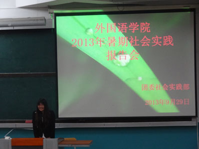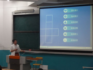 2013年9月29日晚6:00,由万象城娱乐awc线路团委主办的暑期社会实践报告会在锦绣楼T201正式召开。莅临本次活动的嘉宾有:2013级政治辅导员袁野老师、团委副书记杜云峰同学、各位优秀的暑期实践活动讲述员以及万象城娱乐awc线路所有的大一新生。