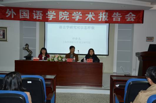 许教授的讲座题为《语言学研究可以这样做》,讲座共分两部分内容,首先,许教授引用沈家煊的论文指出语言学研究中的几个基本概念,明确指出语言学研究中,关键是观念和研究方法,研究对象主要是语言,其次才是语言学理论。在具体的理论研究过程中,对国外理论的研究只是研究的前期准备,并且着重强调在进行语言学研究时一定要培养问题意识,从而有进行目的明确的针对性研究。其次,许教授借用自己的英汉对比研究实例,回答了“语言学研究可以如何做”的问题,具体说明在开展一项实际对比研究时,如何确定对比范围,搜集、梳理和研究相关文献,如何确定合适可行的理论框架和分析方法,搜集所需语料,进行恰当的定量和定性分析。