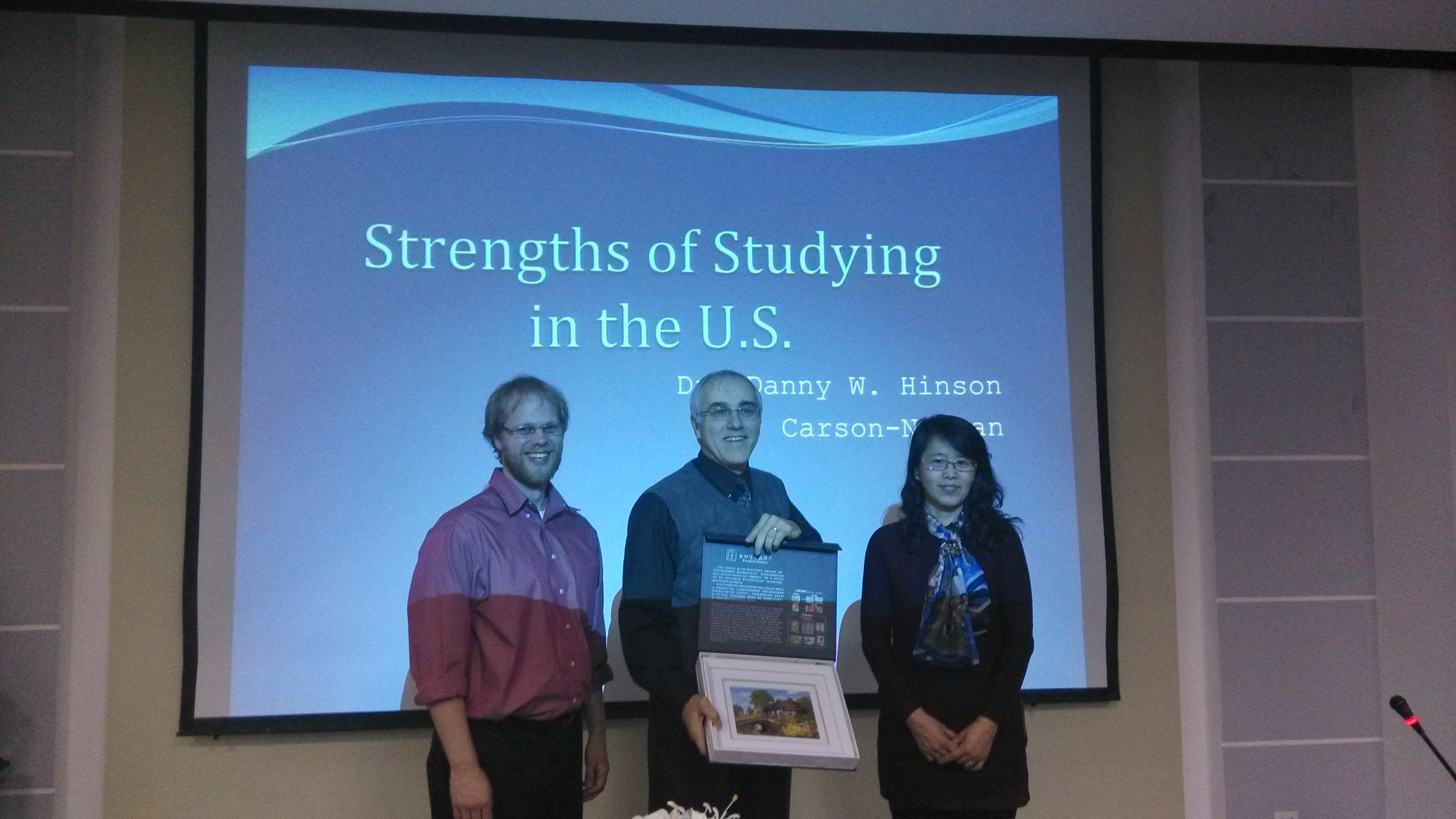 2月28日18时,万象城娱乐awc线路在文博楼1019室举办以“Strategies For Independent Learning”为主题的英语讲座,主讲人是来自美国卡森纽曼学院的Danny Hinson教授。卡森纽曼学院位于美国田纳西州,1997年学院被美国《货币》杂志评为百所优质大学之一。1993年成为入选国家教育学习计划的17所大学之一,拥有160年的历史。Danny教授的学生,万象城娱乐awc线路外籍教师Micah老师担任了此次讲座的主持人,