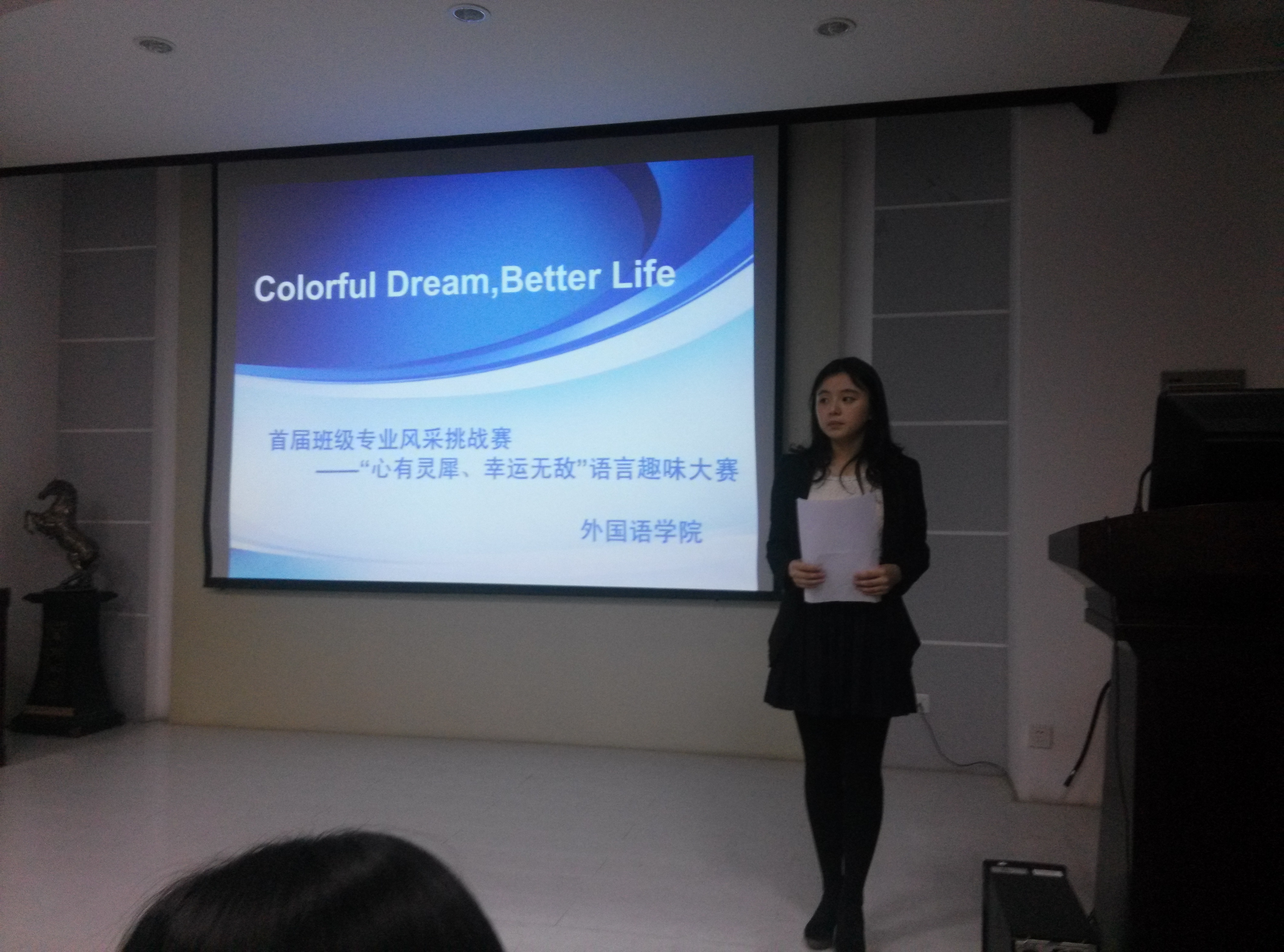 5月12日18时,万象城娱乐awc线路团委在文博楼学术报告厅举办了首届班级语言趣味竞赛,来自2011级和2012级的16支队伍参加了比赛。万象城娱乐awc线路团委副书记杜云峰,社会实践部部长杨树云,办公室主任尉哲出席了本次比赛并担任嘉宾。
