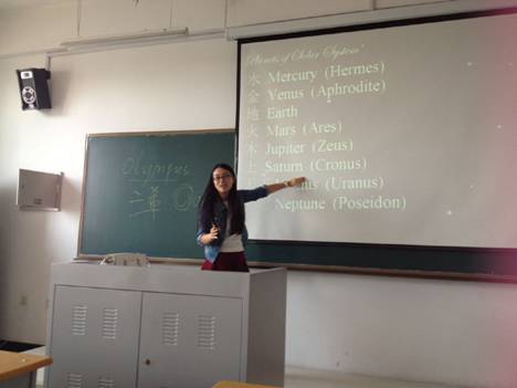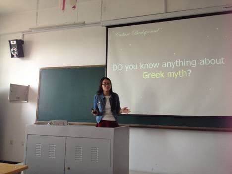 为了提高教学质量,研讨课堂教学方法,6月3日下午,大学英语第二教研室在文博楼812举行青年教师观摩课活动。本次观摩课由本教研室青年教师朱曼老师主讲,观摩课内容为希腊神话背景介绍。朱曼老师采用问题导入的方式,用生动的语言,深入浅出地从语言学、心理学、艺术等方面讲授了希腊神话相关知识。