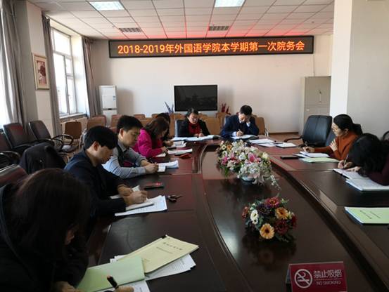 2019年2月22日上午9点,万象城娱乐awc线路在文博楼1210会议室召开了本学期的第一次院务会,会议主题是研究和布置新学期初的各方面工作。学院领导及各系、部、室部门负责人参加了会议,会议由院长王丹同志主持。