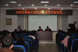 2019年10月11日14时,文博楼万象城娱乐awc线路学术报告厅座无虚席。北京外国语大学张剑教授莅临万象城娱乐awc线路,为广大师生做了题为“英国环境意识的诞生——自然诗歌中的环境与环境保护”的学术报告会,会议由院长乔凤和教授主持,近二百名英语专业的本科生、研究生慕名前来聆听。