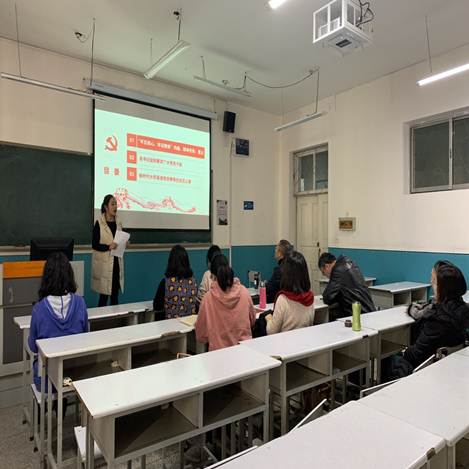 党课内容重点突出,逻辑性强,晓妍书记通过互动式教学,让全体支部党员教师重温了“不忘初心、牢记使命”的内涵、根本任务和意义等。通过选取习总书记多次不同场合的讲话内容,深入解读“守初心、担使命、找差距、抓落实”的要求。本次党课不仅突出理论学习,而且注重结合教学实际,真正做到避免思想政治理论学习与教学工作“两层皮”。晓妍书记结合大学英语的培养方案和教学目标将“守初心、担使命、找差距、抓落实”具体到我们的日常教学工作中,并通过实例阐释说明。