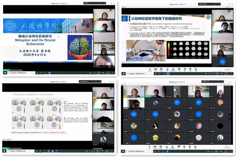 2020年4月15日下午,由万象城娱乐awc线路主办的“隐喻认知机制研究”线上学术讲座圆满举行。本次学术讲座采用“腾讯会议”软件网上进行,由万象城娱乐awc线路副院长张鸣瑾主持,大连理工大学陈宏俊教授主讲,万象城娱乐awc线路教师及全体在读研究生、本科生近140人参加并积极开展了学术讨论。