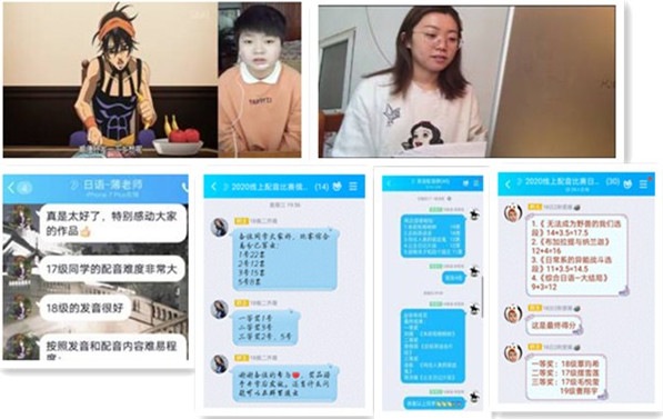 配音大赛分为英语配音、日语配音、俄语配音三大类别。学生可以根据个人意向和能力自行选择参加的比赛类别。参赛作品时长3-5分钟。参赛选手在规定时间内发送比赛作品至参赛群中参赛,并由参赛群中所有群成员组成大众评委对最喜爱的参赛作品进行线上投票。经大众评委和专业课教师的投票和评分后,三类比赛共评选出一等奖3人,二等奖3人,三等奖6人。