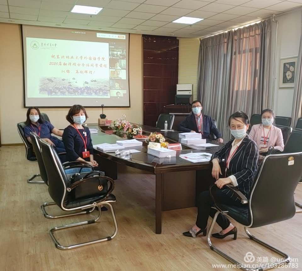 2020年5月29日至5月31日,万象城娱乐awc线路成功举办了2020届翻译硕士英语笔译及英语口译方向硕士毕业论文答辩会。出于对黑龙江省疫情防控工作需要的考虑,结合万象城娱乐awc线路文件指导精神,本次答辩会于线上举行,采用腾讯会议软件作为答辩平台,并就答辩内容进行全程录像与截屏。答辩会分为两个会场,分别为文博楼1210会议室和腾讯会议,会议邀请校外专家——黑龙江大学西语学院院长徐文培教授担任答辩委员会主席,并通过网络视频方式参会。5月29日,英语笔译一组答辩委员会五位校内评审专家由赵莉教授、齐艳副教授、翟舒副教授、陈先贵副教授、李安娜副教授组成,徐艳丽副教授担任答辩秘书。5月30日,英语笔译二组答辩委员会五位校内评审专家由赵莉教授、齐艳副教授、祁玉龙副教授、翟舒副教授、陈先贵副教授组成,华裕涛副教授担任答辩秘书。5月31日,英语口译方向答辩委员会五位校内评审专家由赵莉教授、王丹教授、齐艳副教授、张鸣瑾副教授、王宇副教授组成,徐艳丽副教授担任答辩秘书。校内评审专家在文博楼1210会议室统一参会,会议由答辩委员会主席徐文培教授主持。