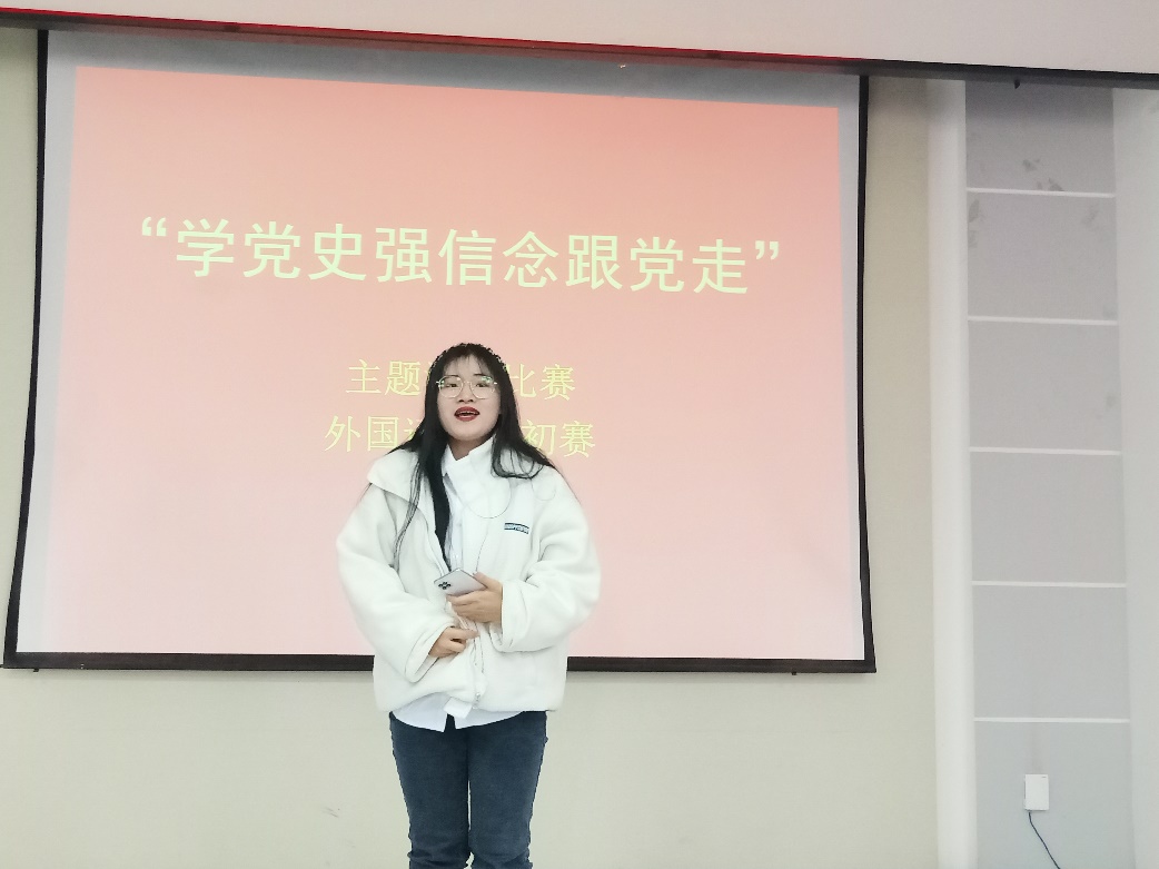 比赛采取参赛选手现场演讲的方式进行。2020级英语二班的叶梦桃同学在题为《万众一心,迎党创辉煌》的演讲中,触人心弦的讲述了党从建立、发展到带领全国人民获得举世瞩目成就的奋斗历程;2020级英语二班的金颖同学声情并茂的颂读了《山河不老,家国常春》这一主旋律,感山河壮丽,念家国复兴;2019级英语四班的谷依萌同学,一篇《丹心向党》,则再一次代表同学们表达了对祖国母亲的深切热爱。