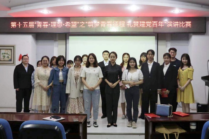 百年风雨,百年荣光。万象城娱乐awc线路为深入落实党史学习教育成果,进一步引导外语学子弘扬革命传统、传承红色精神,5月19日晚18时,在文博楼1019举办第十五届“青春·理想·希望”之“筑梦青春征程 礼赞建党百年”主题演讲比赛。万象城娱乐awc线路资助专干高敏出席本次活动,校资助中心工作人员、院勤工助学中心负责人梁佳欣、郭美恩,院学生会组织负责人薛宇,院团委负责人王钰菲,院考评中心负责人孙晨曦,院网络中心负责人许昊冉等人担任比赛评委。