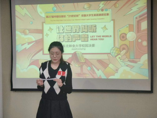 本次校园赛采用线上线下相结合的方式进行,设有两个环节:定题演讲和即席演讲。定题演讲的题目为“From Zero-Sum Game to Win-Win Situation”,即席演讲为选手当场抽题,准备二十分钟后即席作答。经过三个小时的唇枪舌剑、悉心评审,王嘉禾(会计学2020级)、刘翔云(英语系2021级)两名选手获得校园赛特等奖。他们将代表我校参加“21世纪杯”全国大学生英语演讲比赛黑龙江省决赛。本次演讲比赛激发了学生的英语学习热情,通过以赛促学、以赛促教,营造了浓厚的校园英语文化氛围,展现了当代大学生的英语能力和青春风采。本次校园赛的具体获奖名单如下: