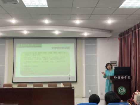 接下来,董晓烨教授为大家介绍了英语语言文学方向研究的话题,如文本研究、理论研究、国别英语文学研究、作家研究、比较文学研究等,并运用具体的案例进行解析,让同学们清晰明了的了解文学研究的具体内容与方向。