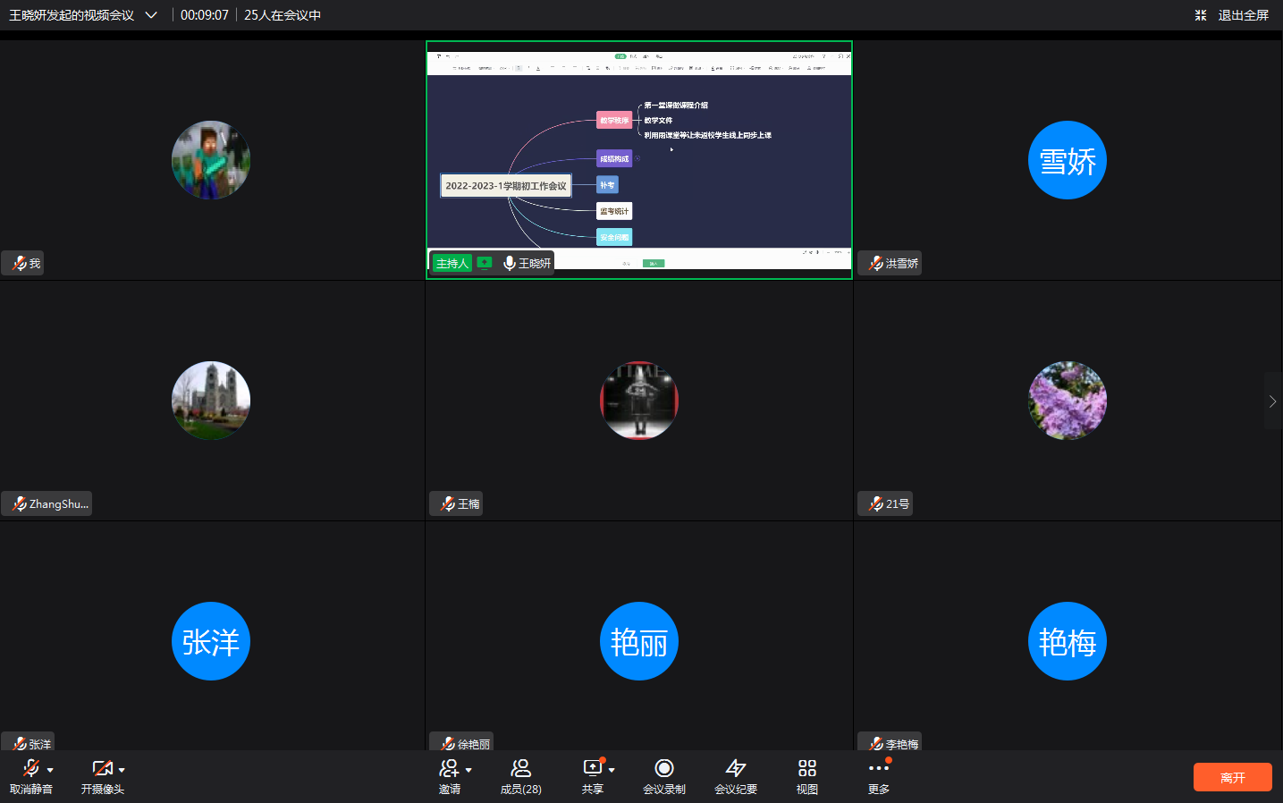 2022年8月25日13点30分,大学英语第一教研室以钉钉会议形式举行工作会议。本次会议由教研室主任王晓妍主持,全体教师参会。