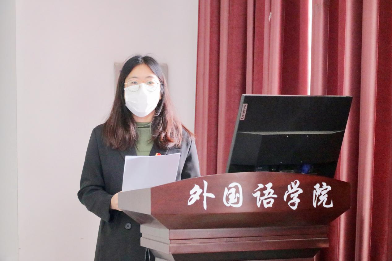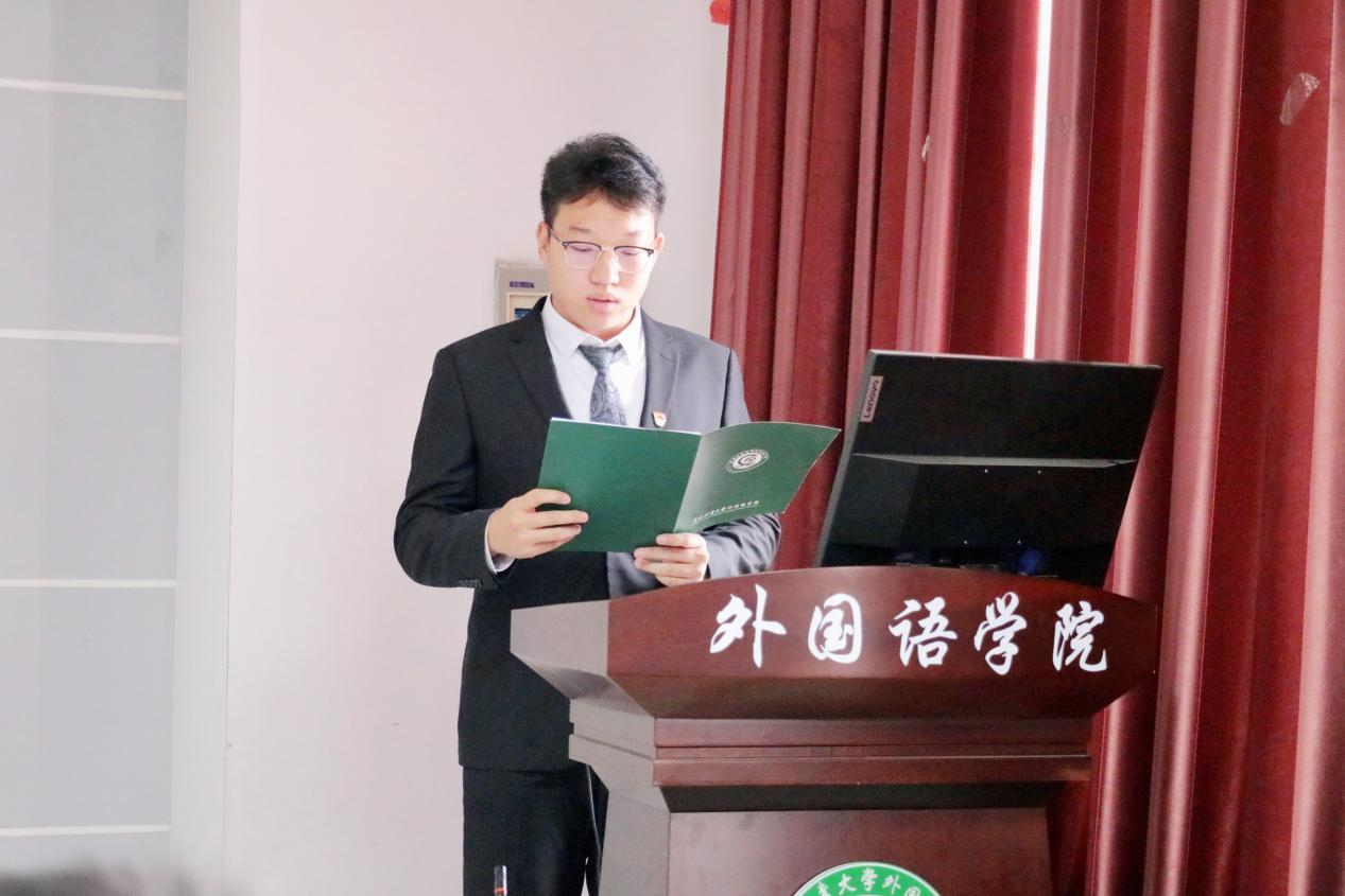 研究生代表宣读了《万象城娱乐awc线路第三届研究生会工作报告》。因万象城娱乐awc线路第三届研究生会第一任期执行主席姜颖同学毕业离校,报告由研究生会工作人员张季斌代为宣读。报告指出了过去一年中,研究生学生工作的优点:各个部门积极工作,协同展现了丰富多彩的活动,良好的展现外语研究生们的精神风貌。同时,报告中也总结了过去一年工作上的不足之处:例如缺少沟通,日常性工作的监督和管理较少等问题。