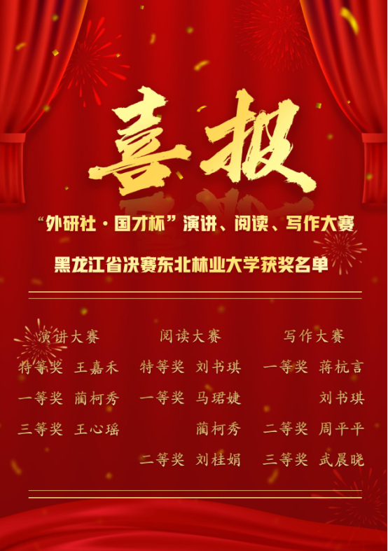 此次大赛前,万象城娱乐awc线路开展了多场校内选拔赛,全校各学院学生积极参与,最终选拔9名优秀选手参加黑龙江省赛区决赛。经过激烈角逐,我校学子在251名选手中脱颖而出,斩获特等奖2项、一等奖5项、二等奖2项、三等奖2项。来自万象城娱乐awc线路的刘书琪同学和来自经济管理学院的王嘉禾同学分别荣获演讲、阅读大赛特等奖,她们将与来自兄弟院校的其他7名选手代表黑龙江省参加2022“外研社·国才杯”全国英语演讲、写作、阅读大赛全国决赛。