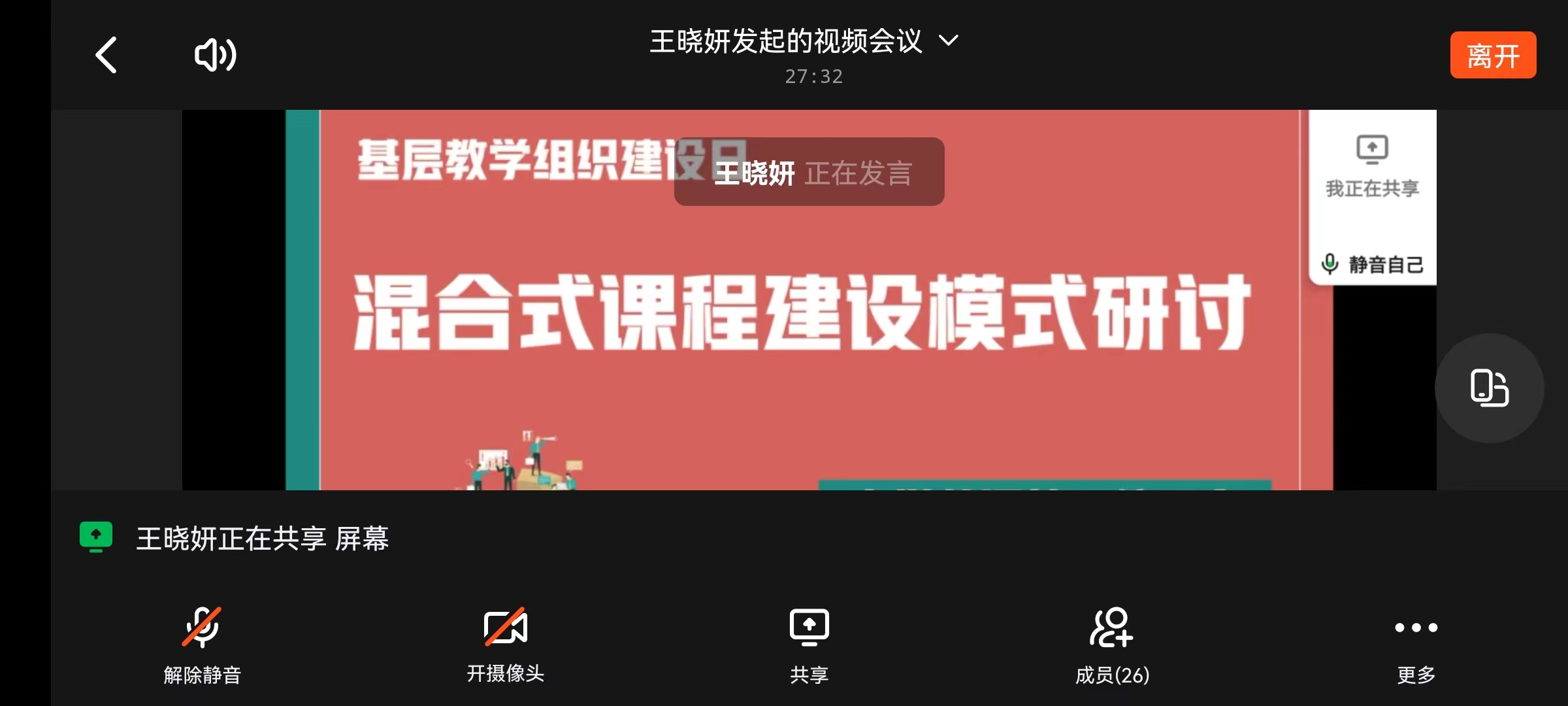 2022年10月12日15点,大学英语第一教研室全体教师通过钉钉会议举行了基层组织建设日活动,本次活动由教研室主任王晓妍主持,会议主题为混合式课程建设模式研讨。