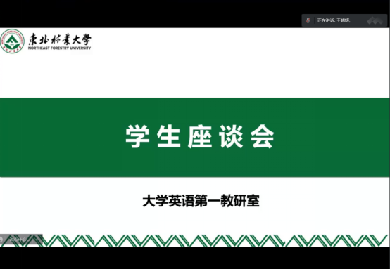 2022年5月18日14点55分,大学英语第一教研室在腾讯会议召开期中教学大检查学生座谈会,本次活动由教研室主任王晓妍主持。