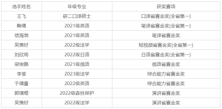 11月7日,2024 “外研社·国才杯”“理解当代中国”全国大学生外语能力大赛黑龙江省赛圆满落幕。我校9位选手经过线上、线下多轮比赛,共斩获省赛金奖10项。他们将代表黑龙江省参加国赛的激烈角逐。