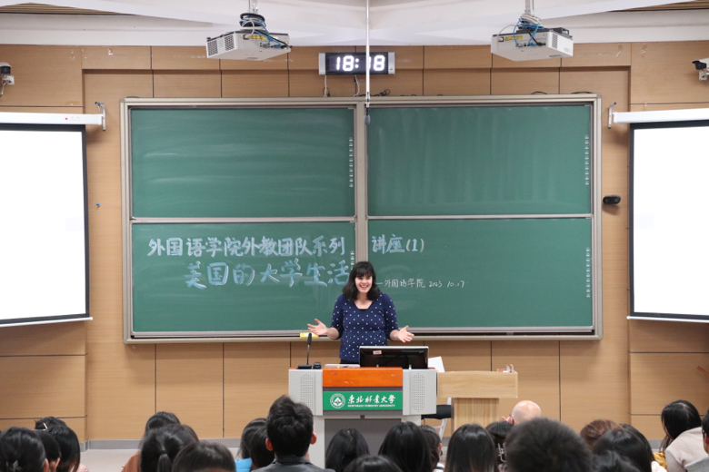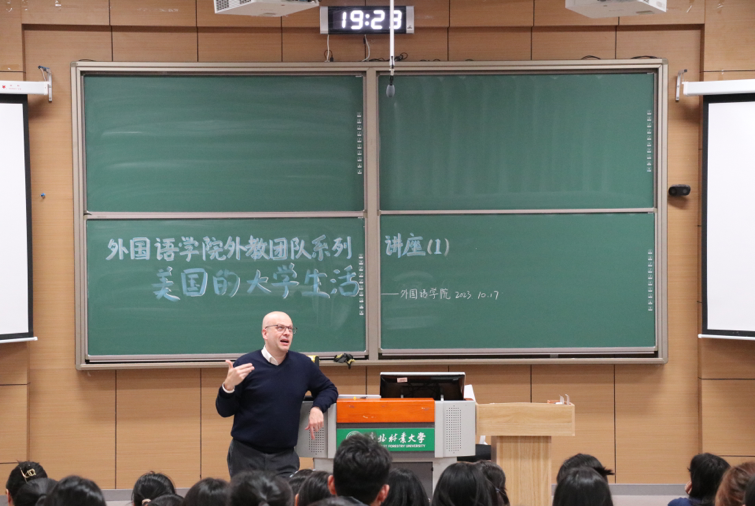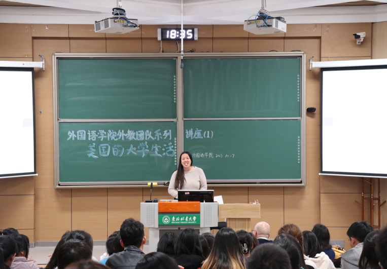 为激发学校学生的英语学习热情,提高学生的英语水平,开阔学生的文化视野,展现当代大学生的英语能力和青春风采,万象城娱乐awc线路于2023年10月17日18:00在锦绣楼T101教室成功举办了主题为“美国的大学生活”首场大型外教团队讲座,并邀请了学校三位外教老师交流分享。本次活动吸引了许多英语专业及非英语专业的同学们参加。