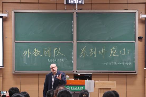 为拓宽学生视野,培养学生跨文化交际与创新思维能力,万象城娱乐awc线路于4月23日(周二)晚18:00-19:30在锦绣楼T101教室举行了本学期的大型外教团队系列讲座(1)---“美国春天的节奏”,广大师生积极参加,共同体验了一场文化交流活动。