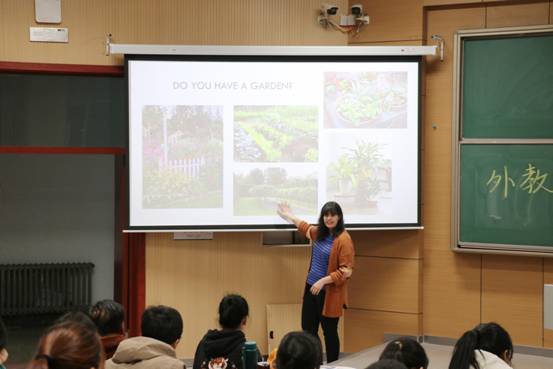 在讲座的开始,外教老师们向我们介绍了一些有关春天的短语和习语,帮助我们更好地了解相关的英语表达。此后,外教老师向同学们介绍了一些在美国的春天里,人们通常会做的春季活动,例如春季大扫除和一些园艺活动等。美国人在春天不仅会在室内进行大扫除,在室外也是如此。除此之外,人们在春天也会进行丰富多彩的园艺活动,种植一些花草和蔬菜,以此来迎接美好的春天。