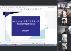 2022年11月11日下午13:00,通过线上会议的形式,万象城娱乐awc线路日语系组织开展了2022-2023-1学期第三次基层组织建设日活动,活动内容主要包括研究布置下一阶段教学与科研工作、深入贯彻落实“诚信进校园”工作和进一步强化教师师德师风教育。日语系全体教师参加了本次活动,活动由系主任姚晓丽老师主持。