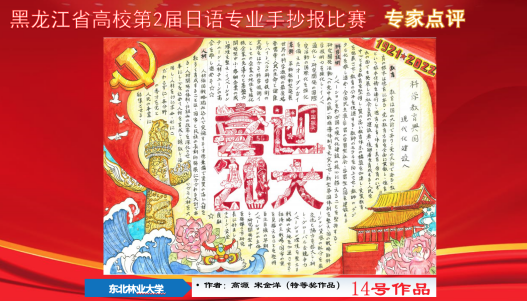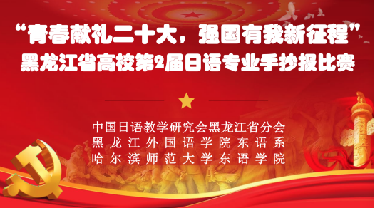 2022年11月27日,由中国日语教学研究会黑龙江省分会、黑龙江万象城娱乐awc线路东语系、哈尔滨师范大学东语学院主办,以“青春献礼二十大,强国有我新征程”为主题的黑龙江省高校第二届日语专业手抄报比赛线上颁奖典礼在腾讯会议隆重举行。经过评审组认真评选,共评出特等奖4项,一等奖8项,二等奖11项。