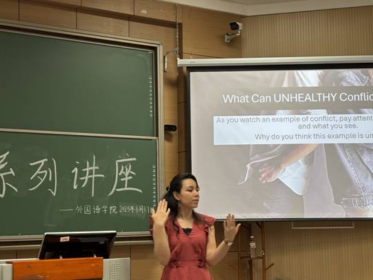 各位外教通过生动的细节分析、有趣的互动以及多元灵活的形式进行分享,向同学们展示了健康的冲突与交流方式、朋友与亲人之间交流的重要性,极大地增进了同学们对不同文化的理解和尊重,促进了跨文化交流。大家纷纷表示,通过参加此次讲座,对文化差异有了更深入全面的认识和理解,对于各类跨文化交流活动也有了更浓厚的兴趣。